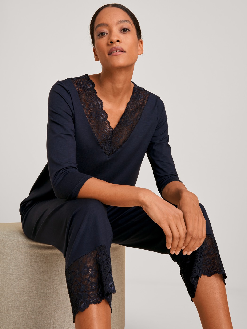 CALIDA Women’s Nightwear Elegant Dreams 7/8 Pyjama | Dark Lapis Blue
