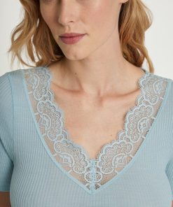 CALIDA Women’s Underwear Silky Wool Joy Short-sleeved Wool-silk Shirt | Sterling Blue